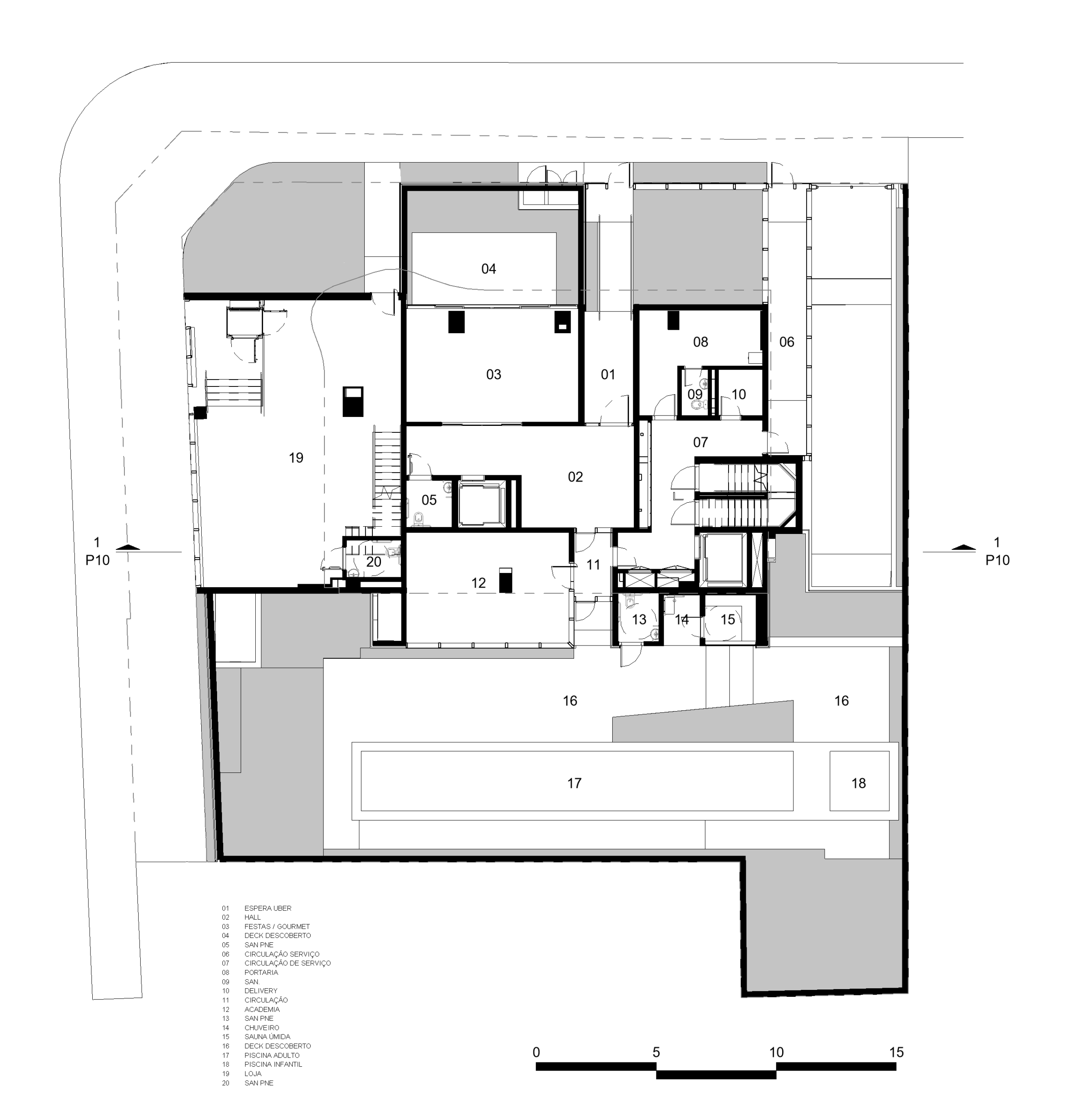 Junto à rua Pamplona, o empreendimento possui uma loja que se integra à identidade da torre através das empenas em concreto e amplos caixilhos. As calçadas são ampliadas e abrigam generosos canteiros permeáveis que através do paisagismo proporcionam um agradável caminhar aos pedestres.