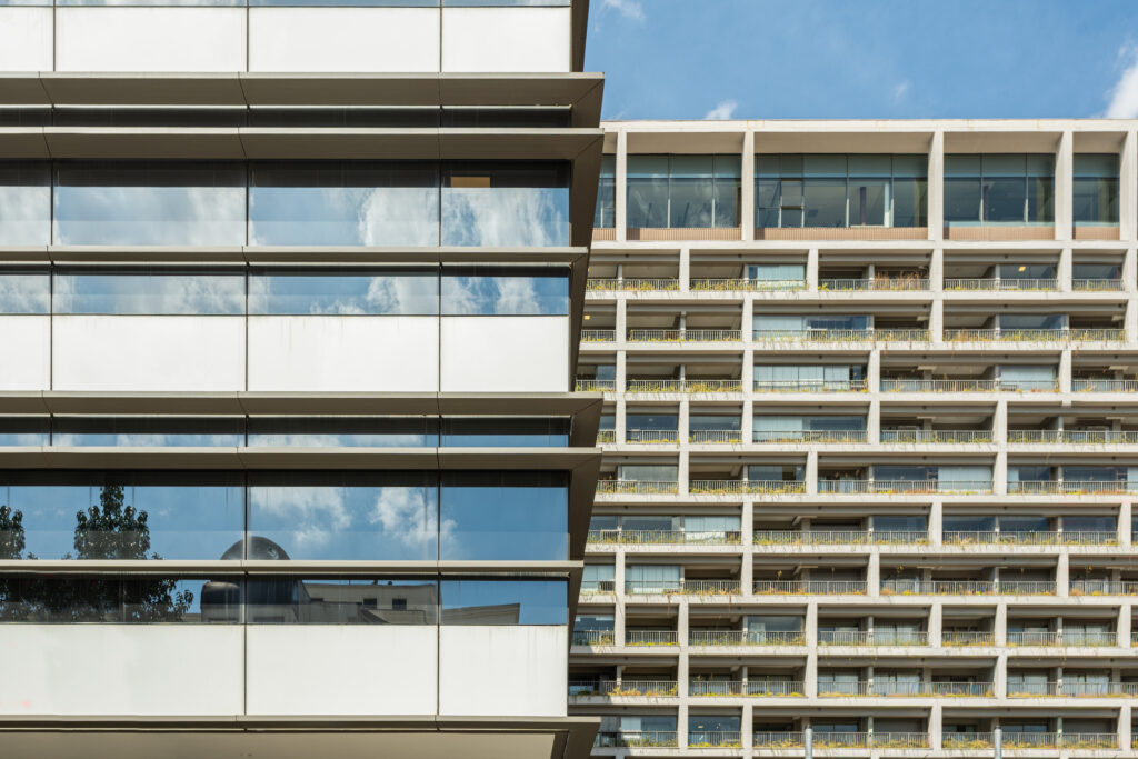 Sua identidade arquitetônica é marcada por linhas dinâmicas nos terraços alternados, que resulta em uma torre com volumetria contemporânea