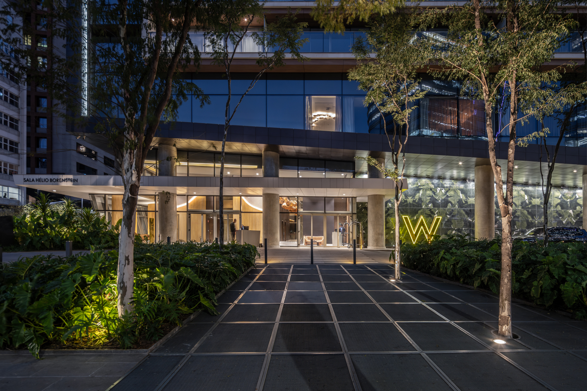 A arquitetura foi pensada em 2 volumes distintos, um residencial mais alto, com 22 pavimentos junto a rua mais tranquila. O comercial integrado ao hotel, marca a esquina entre a Arthur de Azevedo uma rua mais movimentada e a Cristiano Viana, na prática são 2 blocos entrelaçados que geram um volume mais baixo com 11 pavimentos.