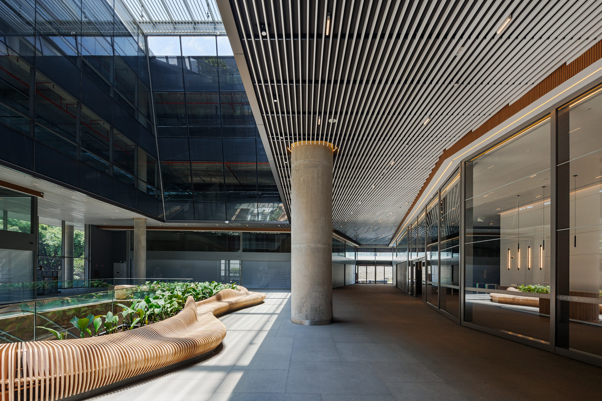 O projeto arquitetônico tem como foco as diretrizes Triple A que promovem qualidade de vida, sustentabilidade e bem-estar. As soluções adotadas potencializam a vida urbana nos espaços e passeios públicos. São notáveis também as qualidades do desenho arquitetônico: o programa corporativo é dividido em uma torre com 21 andares, tendo lajes de aproximadamente 1800m² e um embasamento de 03 pavimentos com cerca de 3700m² em cada andar. Um átrio central permitiu a criação de uma praça verde no térreo, onde circulam moradores e usuários do comércio local, além de proporcionar diversidade nas fachadas e maior incidência de luz aos pavimentos corporativos no embasamento; o topo deste volume foi aproveitado como espaço de convivência, onde há um agradável jardim com vistas para a cidade.