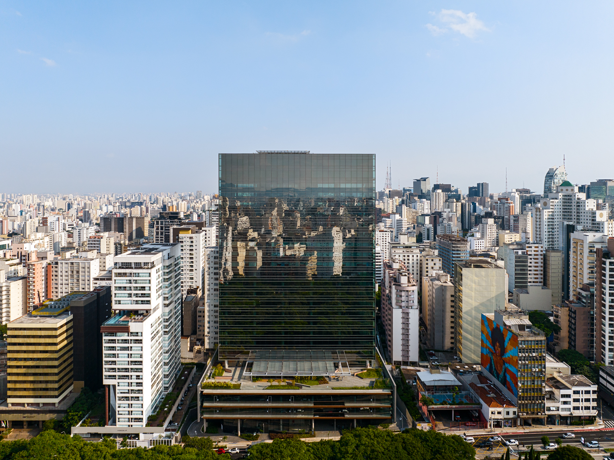 O edifício de uso misto está localizado na Rua da Consolação, em São Paulo, um importante eixo de ligação entre o centro da cidade e a região da Av. Paulista.